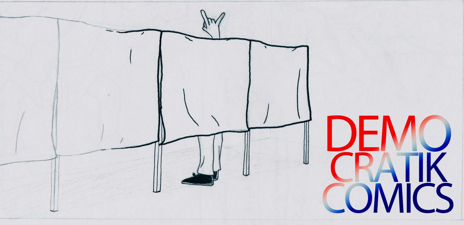 A very simplified idea for the banner contest over at democratikcomics My idea was to kinda show an image in process so you get that wip(work in process) feel, so pencils blue and regular, inks, and then the text done digitally. It seems a bit more disjointed than I had it in my head, but I think it kinda works.