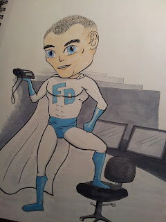 Had a bit of fun this week doing a farewell piece for one of the workers that is leaving us this week. Our man David is having his last day at Health & Welfare tomorrow and is off to continue helping people with his new position at the Boise VA. As a way to show him how much we all appreciate him and will miss him the idea was brought up to do a kinda super hero caricature of David.