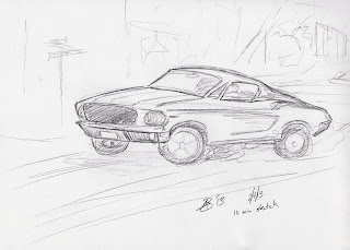 The 10 minute sketch for PencilJack's weekly sketch group had some serious speed this week. Fun stuff. Can't remember the last time I tried to draw a car. I am way out of practice.